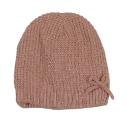 Ružová pletená podšitá čapica s mašličkou