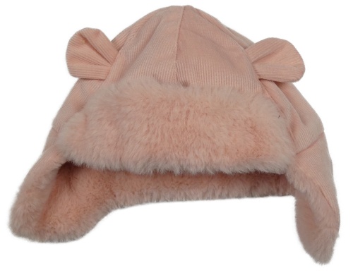 Růžová žebrovaná sametová beranice s kožešinou a uškami