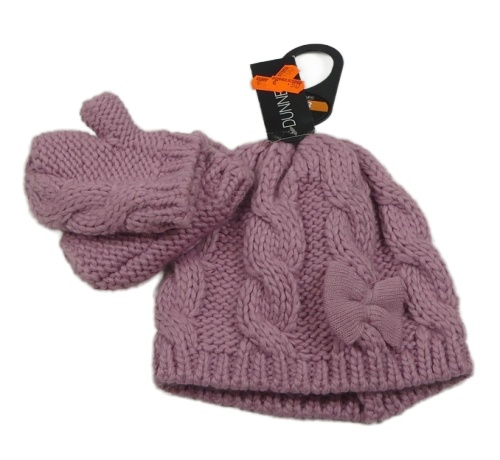 Nové - 2 set - růžová pletená vzorovaná čepice + palcové rukavice St. Bernard