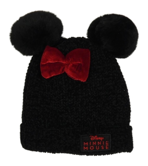 Čierna žinylková čapica s bambulemi a mašlí - Minnie George