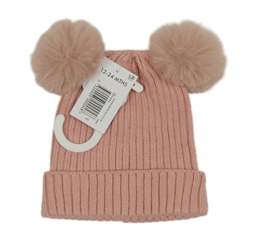Nové - ružová pletená rebrovaná čapica s bambulemi Matalan