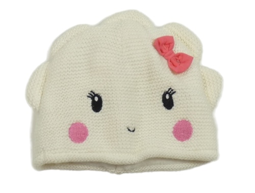 Smotanová pletená čapica s ňufáčikom a mašlou