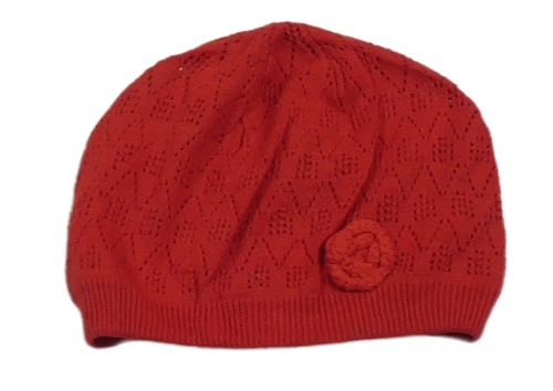 Červená perforovaná pletená čapica s květem Next