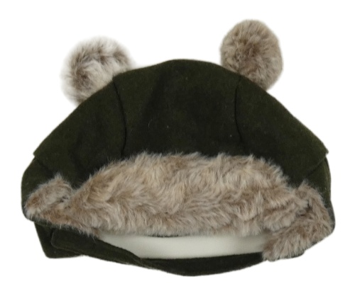 Olivovo-béžová flaušová zateplená čapica s uškami