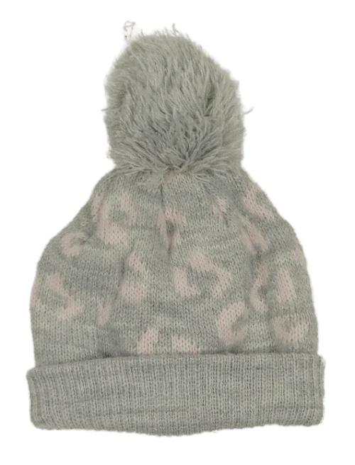 Sivo-ružová vzorovaná čapica s brmbolcom