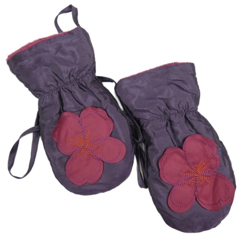 Fialovo-růžové šusťákové zimní rukavice s 3D květem