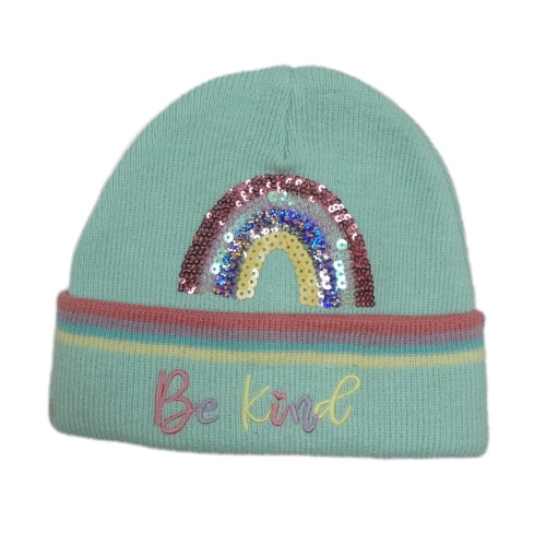 Svetlomodrá pletená čapica s duhou z flitrů F&F