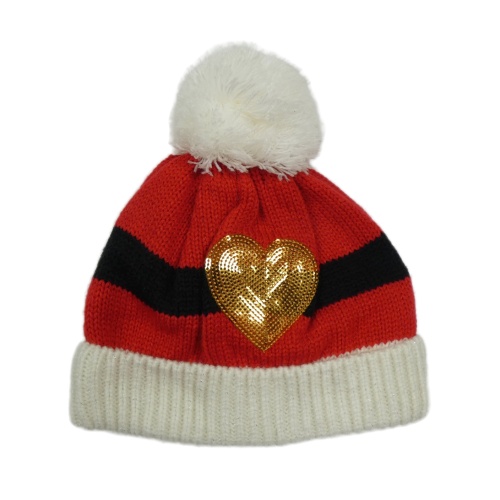 Čierno-biela pletená čapica so srdcem z flitrů a brmbolcom Tu