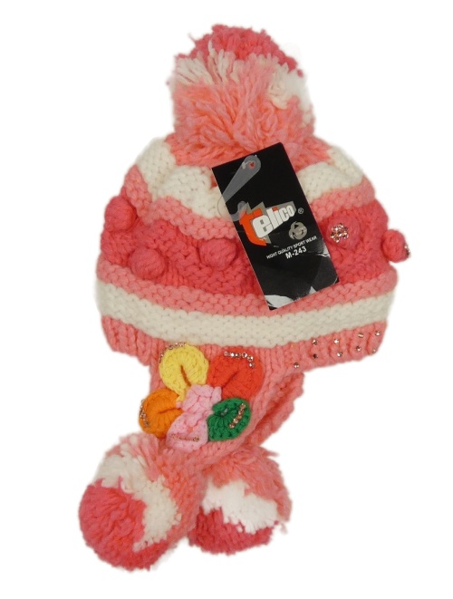 Nové - ružovo-biela pletená čapica s kamienkami a brmbolcom