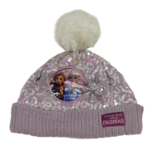 Lila pletená čapica s flitrami a Frozen a brmbolcom Disney