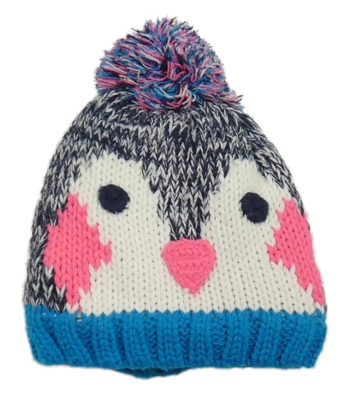 Tmavomodro-bielo-modrá melírovaná pletená čapica s bambulí - tučňáček Topomini