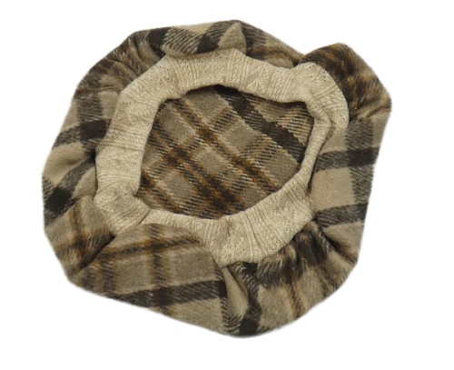 Hnedo-béžovo-tmavohnedý kockovaný vlnený baretka so vzorom