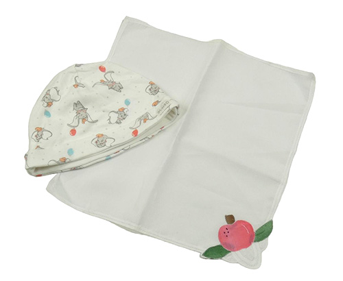 2set - Smotanová bodkovaná á bavlnená čapica s Dumbem + bílá dečka s jablkem