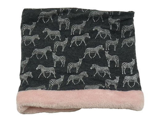 Tmavošedo-růžový zateplený nákrčník so zebrami