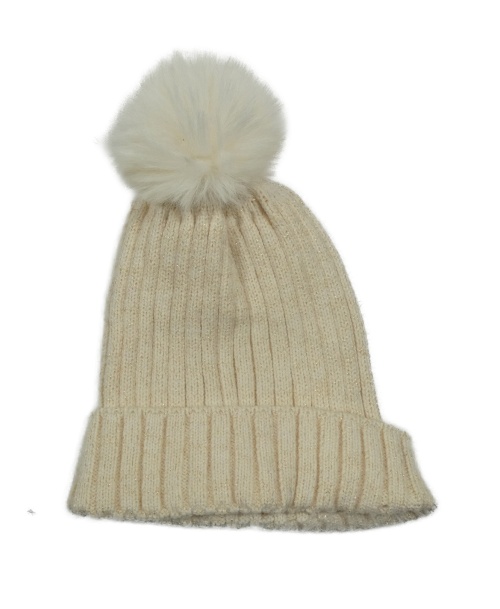 Smetanovo-zlatá pletená čapica s brmbolcom