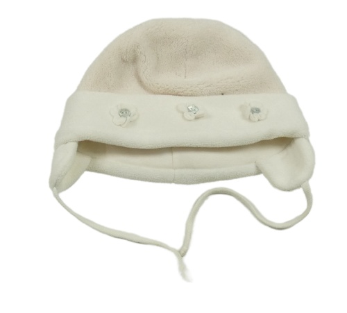 Světlepudrovo-smotanová plyšová zavazovací čapica s kvetmi