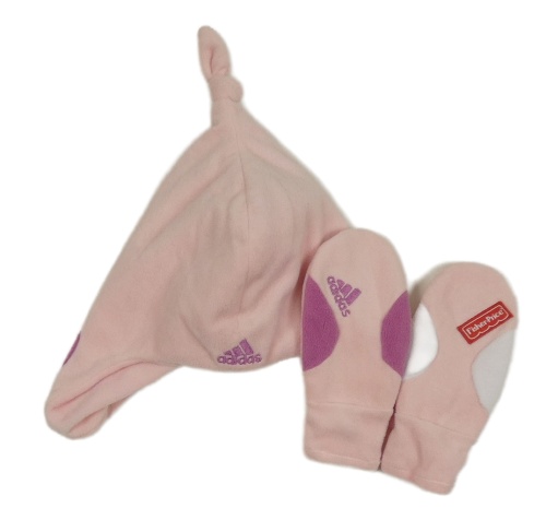 2Set - Světlerůžová fleecová čepice + palcové rukavice Adidas