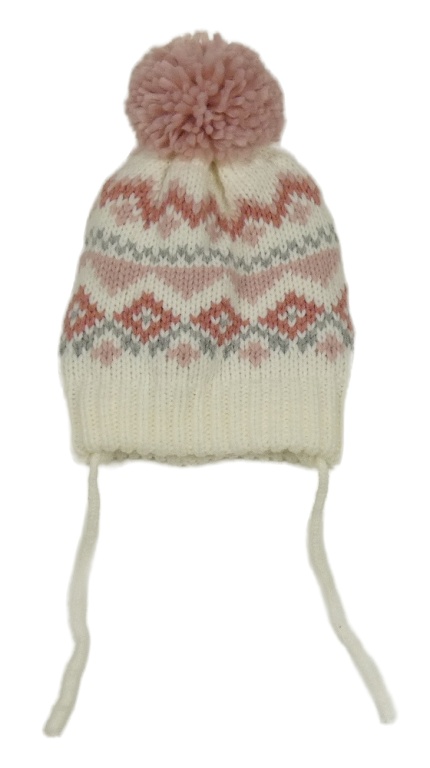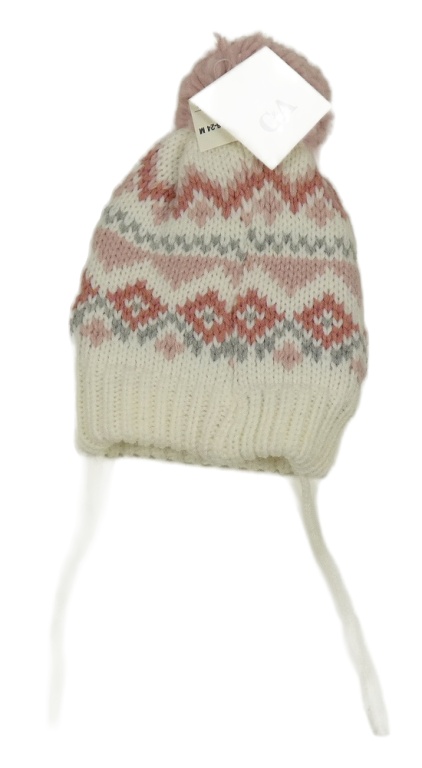 Nové - Bielo-ružová vzorovaná čapica s brmbolcom C&A