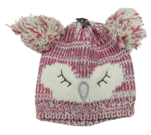 Nové - Bielo-ružovo-sivá melírovaná čapica s ňufáčikom a bambulemi - sova