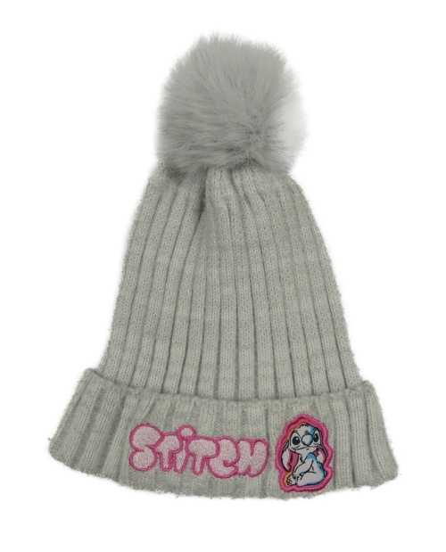 Svetlosivá melírovaná rebrovaná čapica so Stitchem a brmbolcom