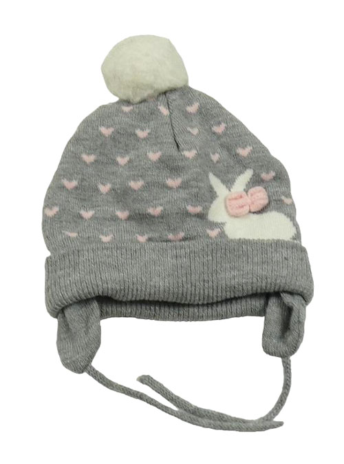 Sivá melírovaná čapica so srdiečkami a králikom C&A