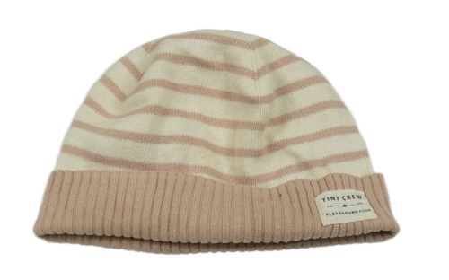 Smetanovo-staroružová pruhovaná úpletová čapica s nášivkou