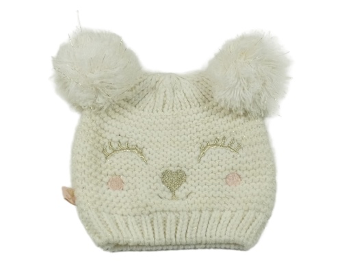 Bielo-zlatá melírovaná čapica s medvedíkom