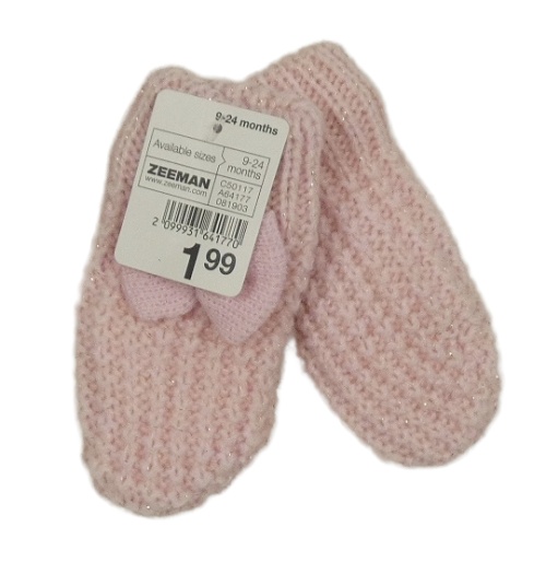 Nové - světlerůžové vzorované rukavice s mašlou a trblietkami ZEEMAN