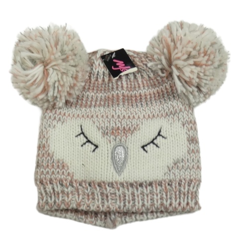 Nové - Sivo-bielo-ružová melírovaná čapica s bambulemi - sova