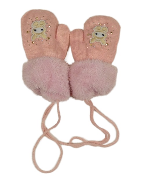 Růžové zateplené palcové rukavice s králíčky a kožešinou