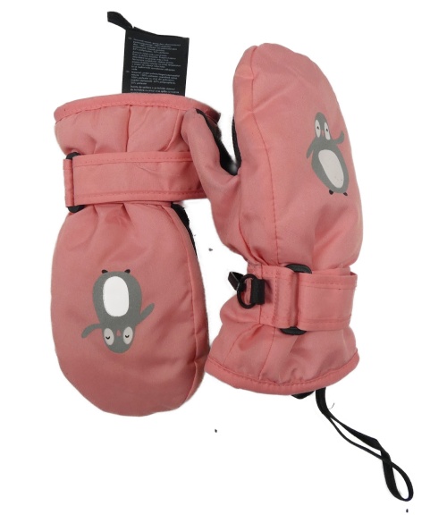 Růžové šusťákové palcové rukavice s tučňáky Lupilu