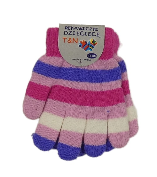 Nové - Růžovo-fialovo-tmavorůžové pruhované prstové rukavice