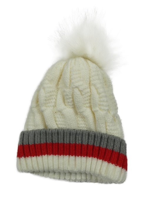 Smotanová vzorovaná zateplená čapica s sivo-červeným pruhom