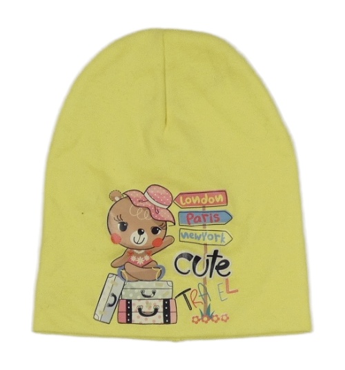 Žltá čapica s medvěďom a nápisom