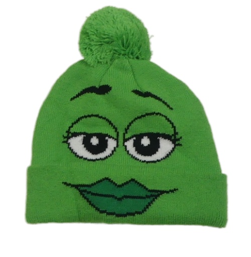 Zelená čapica s očima a pusinkou - m&m's a brmbolcom