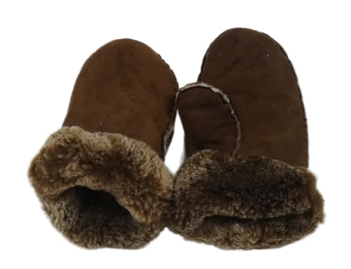 Hnědé semišové zateplené palcové rukavice s kožešinou