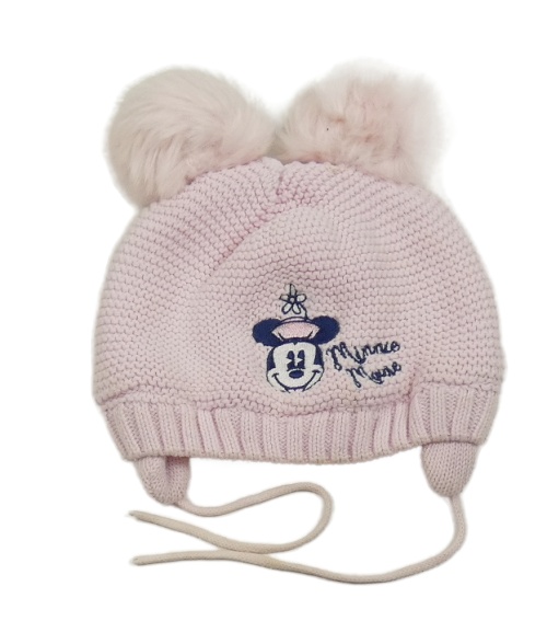 Svetloružová pletená zateplená čapica s Minnie a bambulkami Disney