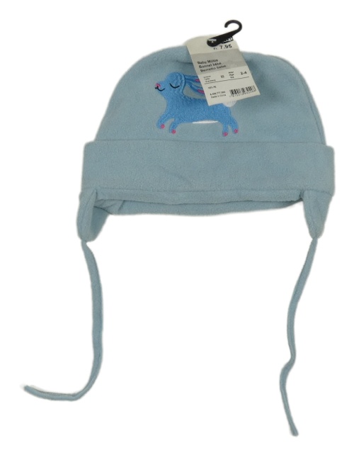 Nové - svetlomodrá fleecová zavazovací čapica so zajačikom