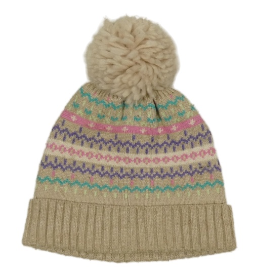 Béžová vzorovaná melírovaná úpletová čapica s brmbolcom M&S