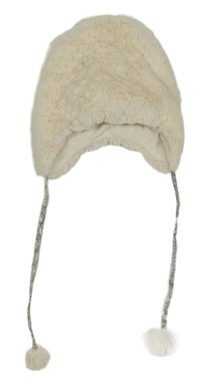 Smotanová kožušinová čapica s bambulemi