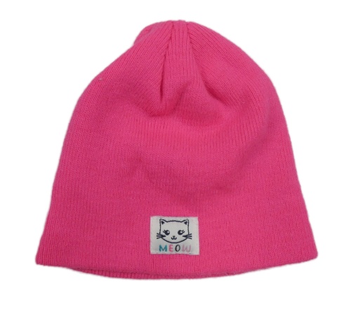 Neónově ružová pletená čapica s mačkou St. Bernard