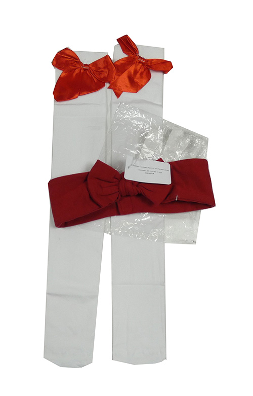 2set - Červená čelenka s mašlí + bílé silonkové podkoleny s mašlou