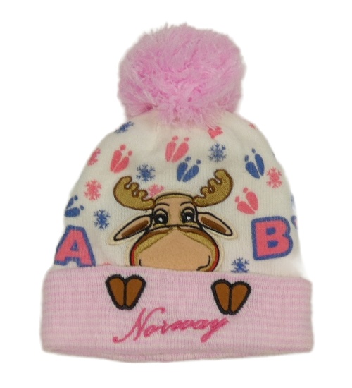 Smetanovo-ružová pletená čapica s losom a brmbolcom