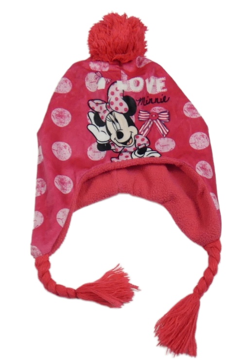 Malinová bodkovaná á čapica s Minnie a brmbolcom Disney