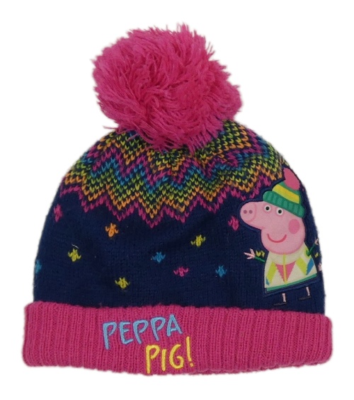 Tmavomodro-ružová vzorovaná čapica s Pepinou a bambulí nu