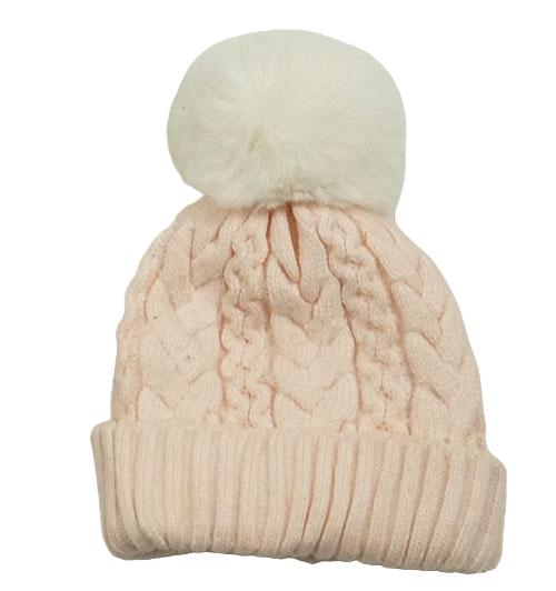 Svetloružová pletená čapica s brmbolcom Laura Ashley