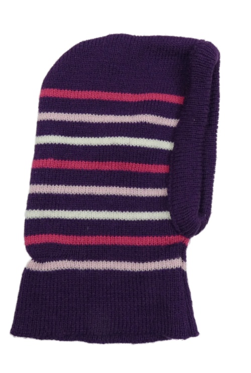Fialovo-růžovo-bílá pletená kukla s pruhmi