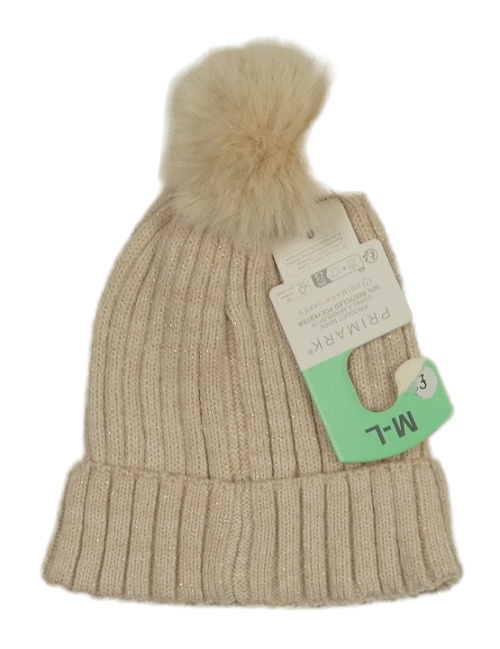 Nové - béžovo-zlatá melírovaná rebrovaná čapica s brmbolcom PRIMARK
