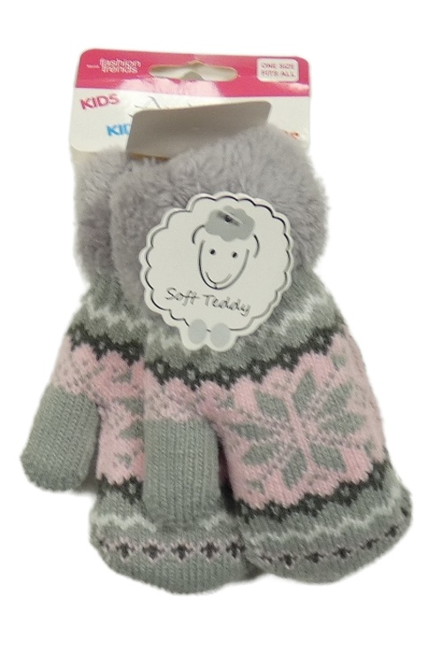 Nové - Šedo-růžové pletené zateplené palcové rukavice s norským vzorom