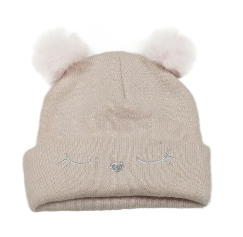 Svetloružová trblietavá čapica s ňufáčikom a bambulemi
